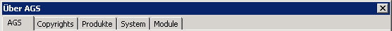 Vous pouvez obtenir diverses informations sur AGS et votre ordinateur en sélectionnant l'entrée « À propos… » dans le menu « ? » du menu principal. La fenêtre « Informations système » comporte cinq onglets :
