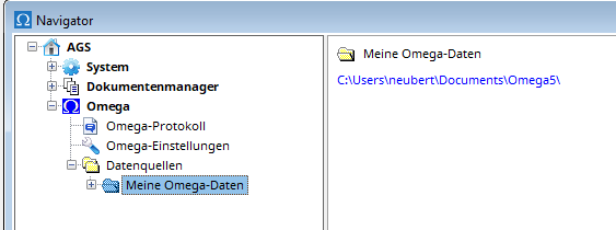 Chaque fichier de fiche est stocké dans un sous-dossier d'une source de données . Pour ouvrir la source de données sur l'ordinateur A dans l'Explorateur Windows, sélectionnez-la dans l'arborescence d'AGS Navigator à l'aide du bouton gauche de la souris, puis cliquez sur le lien contenant le chemin d'accès complet à la source de données dans la vue détaillée d'AGS Navigator. Copiez ensuite l'intégralité du contenu de ce dossier vers le dossier correspondant de la source de données sur l'ordinateur B, accessible via AGS Navigator.