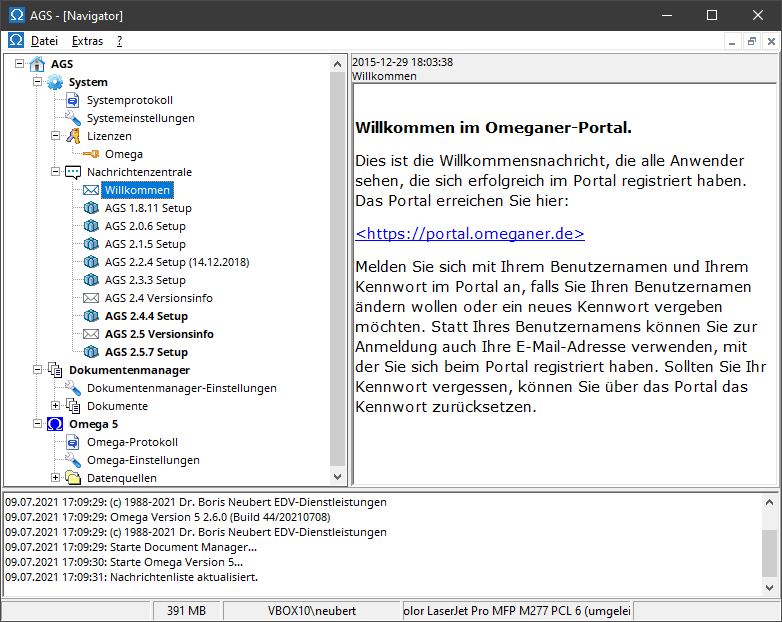 Le menu contextuel de l'entrée Centre de messages permet de rechercher de nouveaux messages, d'afficher les messages masqués, d'ouvrir le presse-papiers dans l'Explorateur Windows ou de vider le presse-papiers pour supprimer tous les fichiers téléchargés dans le Centre de messages. AGS recherche également automatiquement de nouveaux messages au démarrage du programme, puis périodiquement à un intervalle défini par l'utilisateur .
