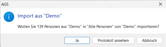 Pour copier toutes les personnes d'un répertoire de personnes vers un autre fichier, cliquez sur le répertoire de personnes dans le fichier source avec le bouton gauche de la souris dans l' arborescence de l'AGS Navigator et faites glisser le répertoire de personnes, tout en maintenant le bouton de la souris enfoncé, vers un répertoire de personnes dans le fichier cible. Pour copier une ou plusieurs personnes, sélectionnez-les d'abord dans la vue détaillée du répertoire des personnes :