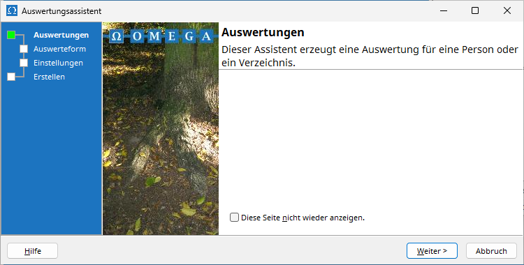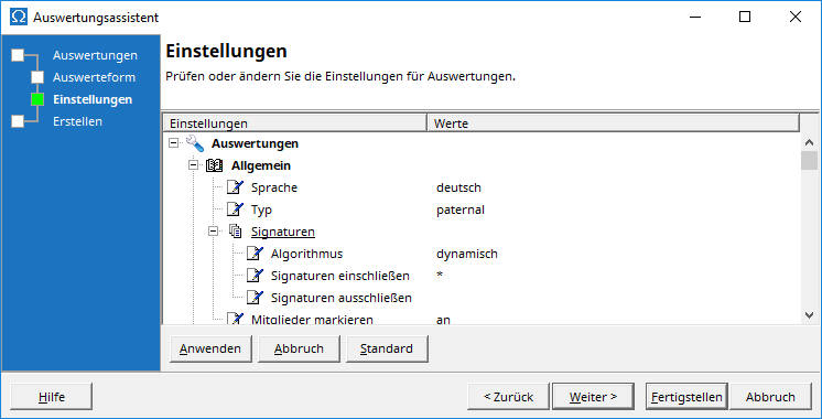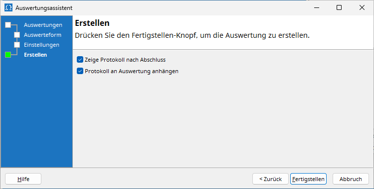 Pour certains modes d'évaluation, l'assistant d'évaluation propose une page supplémentaire permettant de paramétrer l'évaluation individuellement. Cette page est expliquée dans l'aide du programme relative au mode d'évaluation concerné.