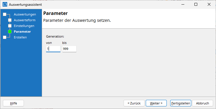 Pour les listes de descendants, il existe une page de paramètres supplémentaire dans l' assistant d'évaluation :