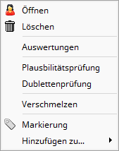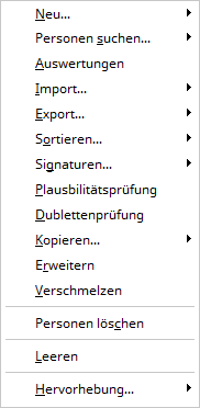 Un double-clic sur une entrée avec le bouton gauche de la souris ouvrira la fiche de la personne. Si vous cliquez avec le bouton droit sur une personne dans l'arborescence du navigateur AGS, vous pouvez sélectionner les fonctions suivantes dans le menu contextuel :