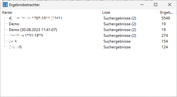 Cette liste, pour chaque fichier dans lequel des personnes correspondant aux critères donnés ont été trouvées, contient le répertoire généré des personnes avec les résultats de la recherche et le nombre de personnes trouvées.